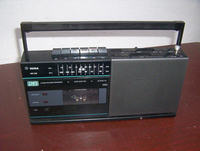 Popis: Přenosný kazetový radiomagnetofon napájený ze střídavé sítě 220V nebo z vestavěných baterií. VKV rozsah OIRT (66 - 73 MHz) i CCIR (88 - 108 MHz). Frekvenční rozsah 60-10000Hz, automatické řízení záznamové úrovně, tónová clona, vestavěný mikrofon, konektor DIN pro externí zdroj signálu, konektor jack 3,5mm pro sluchátka. Tlačítko pauzy, funkce cueing (převíjení oběma směry bez zrušení funkce přehrávání). Skříň z černého plastu, výsuvné držadlo. Na vzhledu se podíleli designéři z Holandska